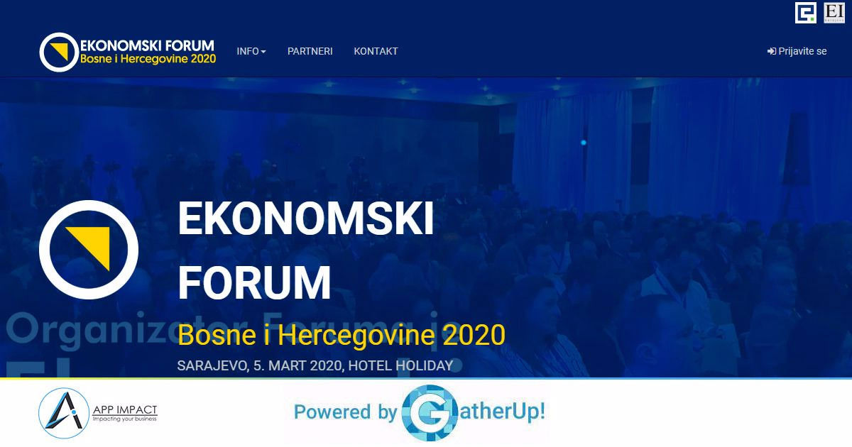 It is our great honor to announce that GatherUp! Event Management Platform is used for the organization of the Economic Forum of Bosnia and Herzegovina 2020. The Forum will be open to all interested parties without the participation fee, but only upon previous registration.